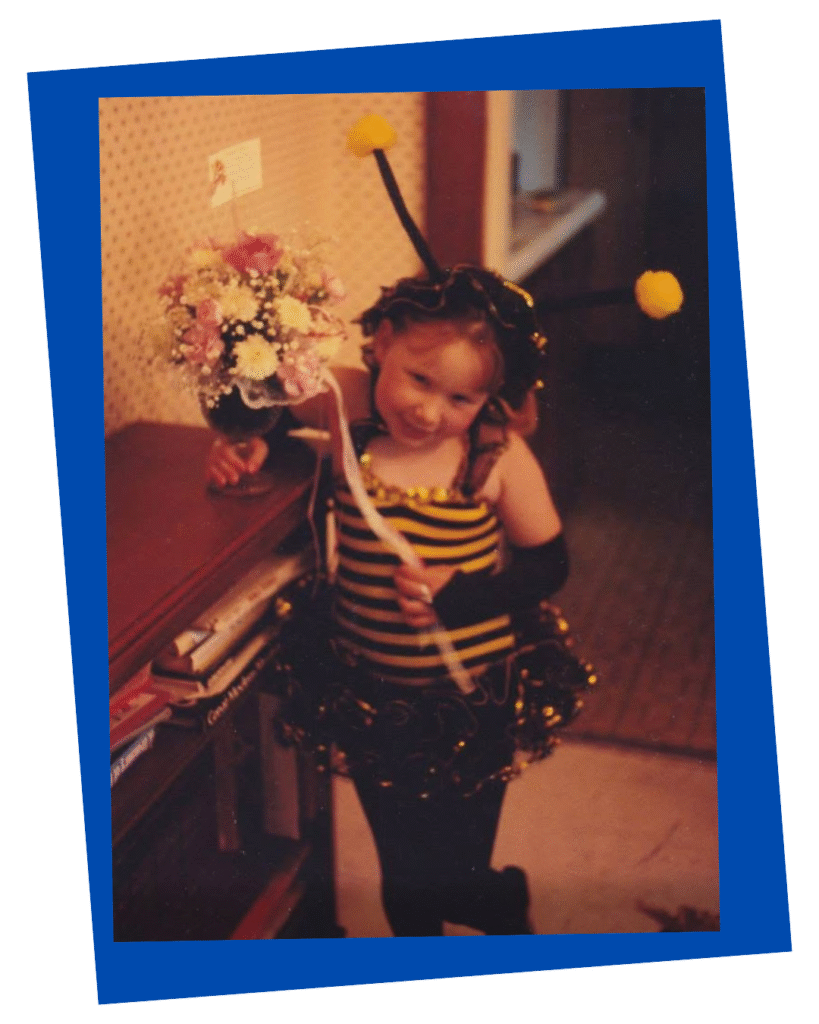 From my humble bumblebee beginnings at my first dance recital to my current role as a mom (entertainer) to my new baby, performance has always been a passion of mine. From studying theatre in college to serving on a community theatre board as a young adult, I’ve acted in, directed, produced and designed a great deal of shows over the years.